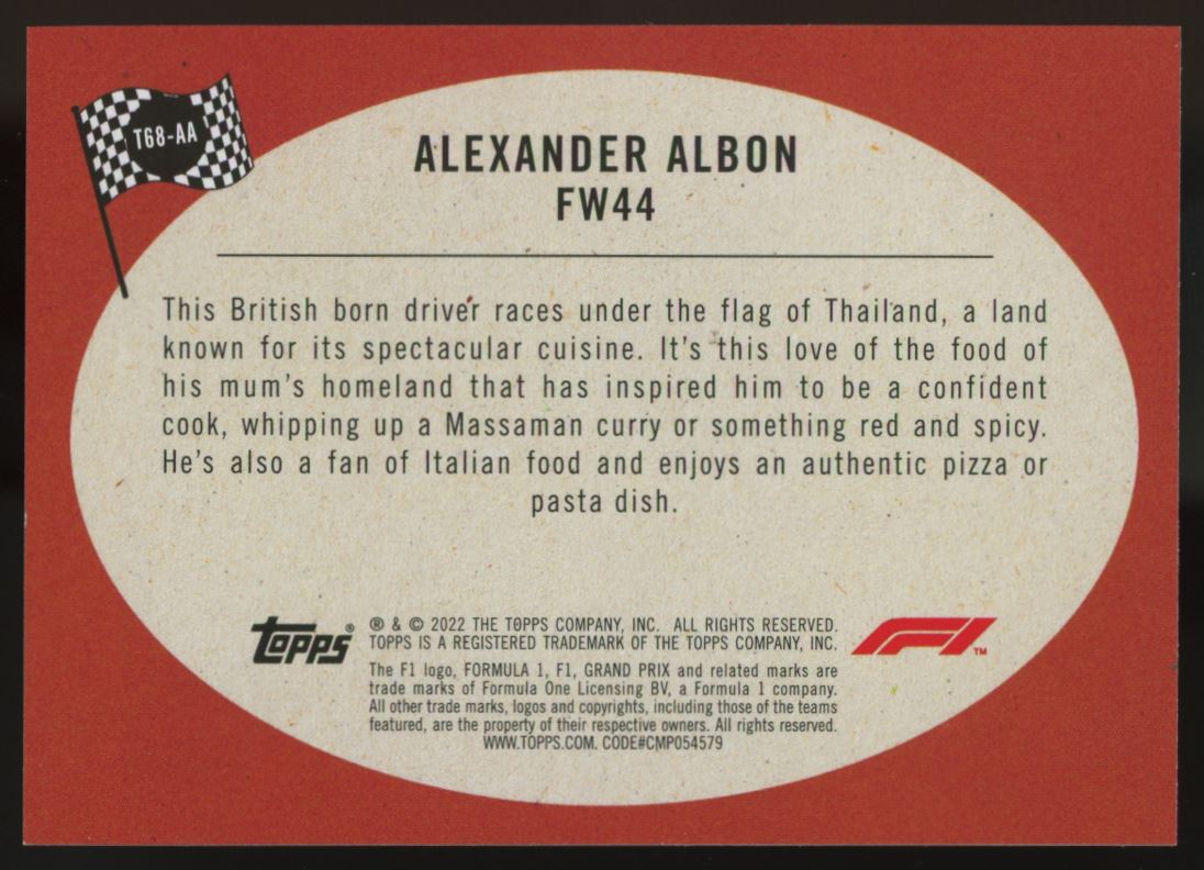 Alexander Albon 2022 Topps Formula One Card # T68-AA